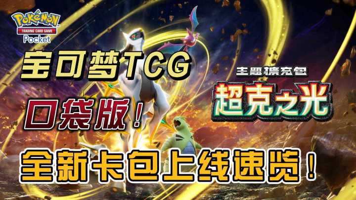 宝可梦TCG口袋版主题扩充包「超克之光」将在2月28日登场! 2月28日主题扩充包「超克之光」会被新追加到卡牌包阵容。「超克之光」中不仅收录了据说是创造了整个世界的幻之宝可梦 ── 阿尔宙斯,还有许多其他的宝可梦。此外,「超克之光」的介绍影片也已经公开。 一、介绍部分在「超克之光」中登场的卡牌:阿尔宙斯 ex[♦♦♦♦]同时也在本作包装上登场的幻之宝可梦 ── 阿尔宙斯。[♦♦♦♦] 的