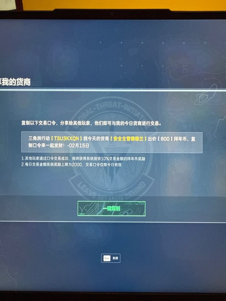 三角洲行动【5ZAUKXK8】我今天的货商【赛伊德】出价【900】拜年币,复制口令来一起发财!-02月15日 #阿萨拉年货节