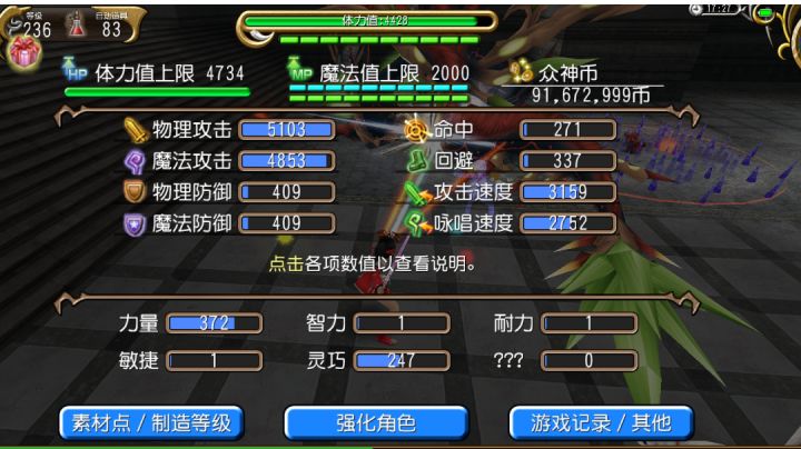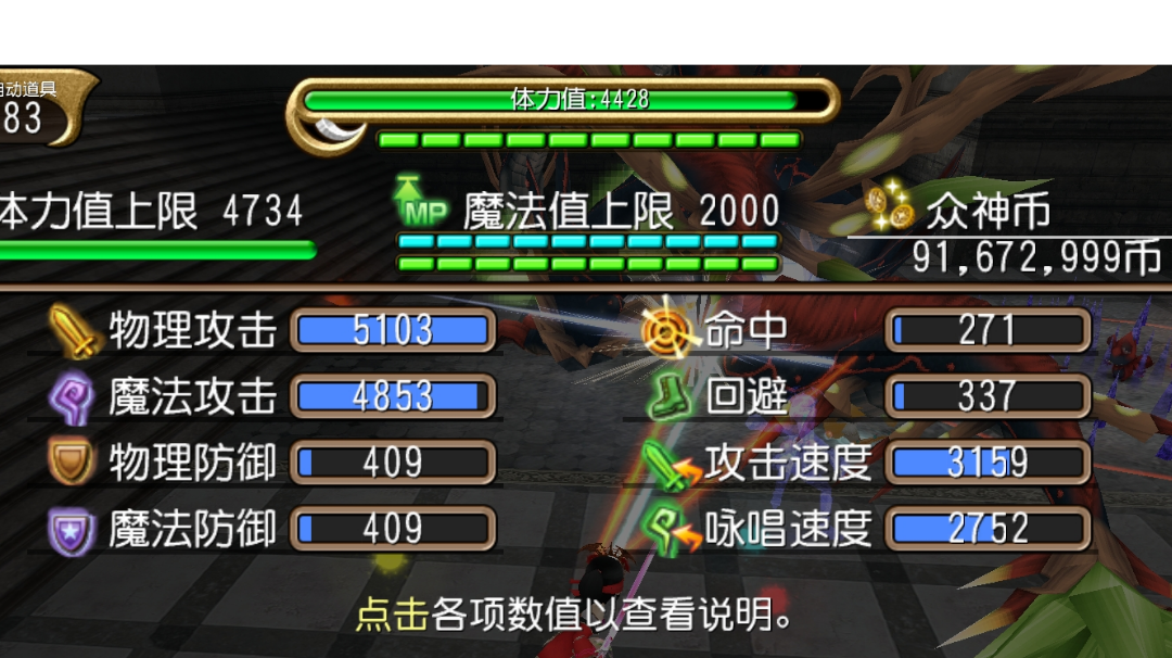 主帖传送门:此为平民通用副女神混伤魔剑【无星石简洁加点】能力值加点:主力副灵装备推荐:连击推荐:手法:开局单开三层神速后单开次破风 开勇气 再用1号连击 接着用2号连击 单用魔法使放出猫然后单放三次剑击 用5号连击 接着用6号连击 然后单放三次剑击和6号连击循环输出 女神20层后在叠满三层附魔情况下用4号连击 3号连击用来续衰弱维持女神暴击随便说下:想装备物魔双吃不可能 天流思路无
