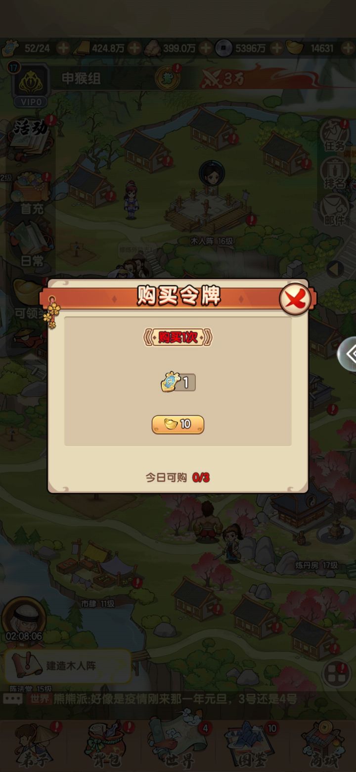 零氪玩家如何零氪130个除魔(或者小号培养)第一次活动,暂时不使用除魔令,囤起来,囤起来。1~每日免费10块2~每日300元宝12块+8个积分每日合计22块,活动7天合计22*7=154块除魔令。活动期间,令牌每天24小时=24个令牌,每天元宝购买3次=3个令牌,7天活动期间,27个令牌*7天=189个令牌,建议活动前一天令牌提前推图产出除魔令,0点以后上线,也就是189+27=216个