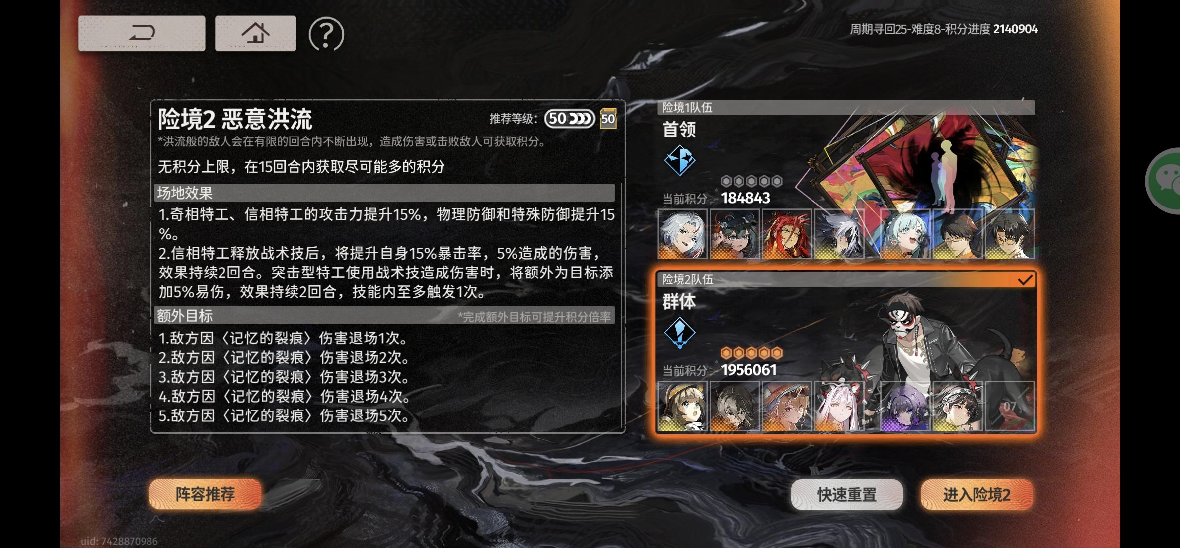 大佬们求求险境复现的配队! 不知道该怎么打了#险境复现 #配队