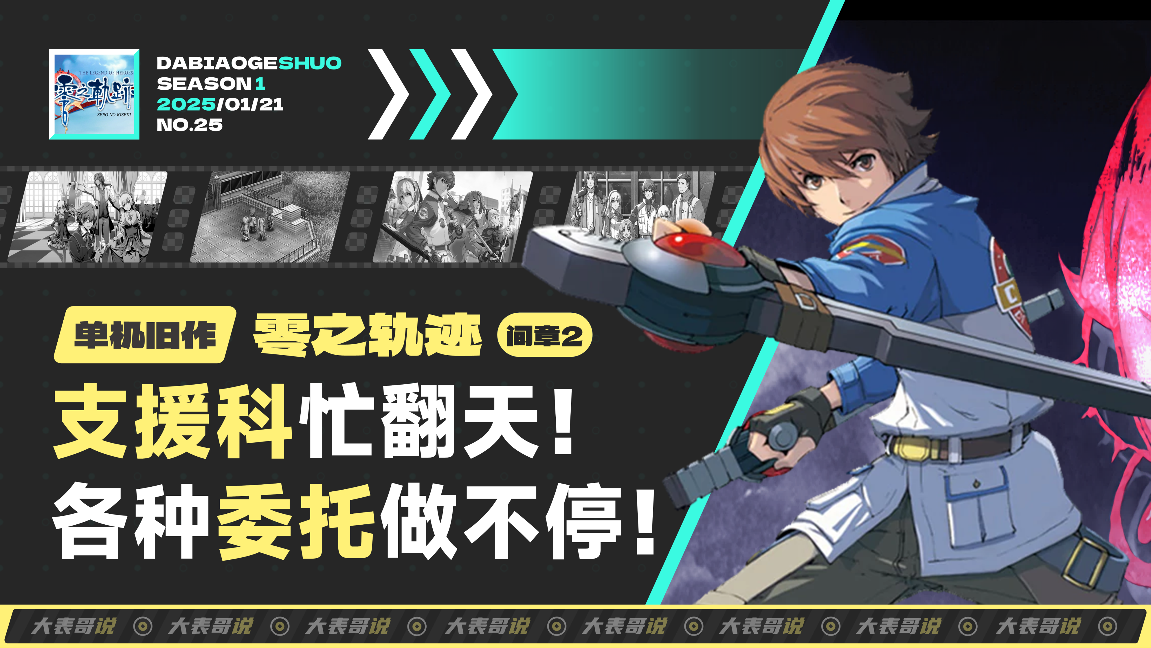 大表哥说 第二十五期 2025.1.21 本期《零之轨迹》系列视频精彩继续,咱们继续来看看第二章到间章的剧情,最后一段(第四章到终章)到过段时间会和大家更新。 从参与剧场巡演安保工作,领略丽霞的漂亮舞姿;到在克州70周年创立祭典期间接各种委托;再到冒着生命危险去米修拉姆地下竞拍会寻找那个【人偶】……四小只在支援科的生活似乎越来越精彩了。本期也会有在执行各种任务过程当中会经常去用到的两个系统:做饭系