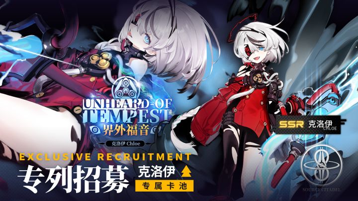 【专列招募】界外福音 克洛伊Unheard-of Tempest Chloe起止时间:6月15日 更新后-7月15日 12:00招募说明:以下乘员获得概率提升SSR 克洛伊#雷索纳斯 #雷索纳斯克洛伊