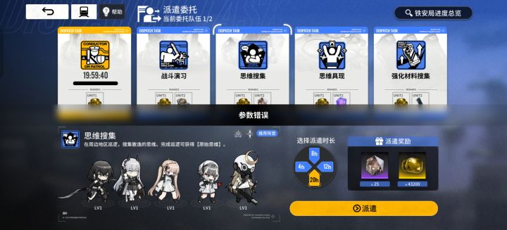 没有办法整两个派遣队伍,参数错误是什么意思?重进不行,换等级高点的也不行。#雷索纳斯 #雷索纳斯交流 #雷索纳斯每日一水 #雷索纳斯