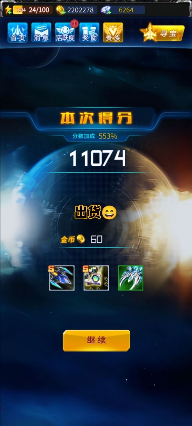 深空巡航很好玩,选好方程基本上死不了,不自己结算都不知道玩到什么时候。 补充一点,现在这个游戏的s装备获取有点难度,玩了五十多天,感觉装备战力很难提升,十年前也玩了这个游戏,现在再玩,画质好了,流畅度好了,感觉还不错,就是装备爆率差了点。 #发现好游戏 #雷霆战机集结sgdhs #雷霆战机集结官方做事的风格 #雷霆战机集结手游 # #雷霆战机集结兑换