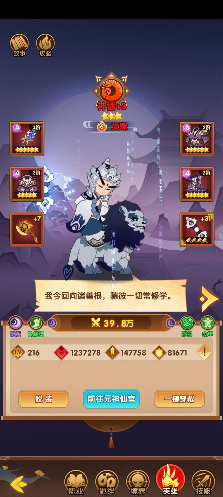 新区官服 847 关卡 26-44 微氪 第一张月卡还没到期 没看到雷震子的实际使用情况和攻略 有人说很垃圾目前没更新吕布 感觉还挺好用,能打boss,能推图一路推图 不断更新,目前推图排行榜第二 目前常用组合就是视频的组合(奶一定要专属加到10,等级拉起来,装备给到加治疗套装,不然真奶不上来) 另外一个小技巧(很多人不在意木头,一定要囤起来,杂货店看到必买,不要买24小时的,看到狩猎也是木头为主