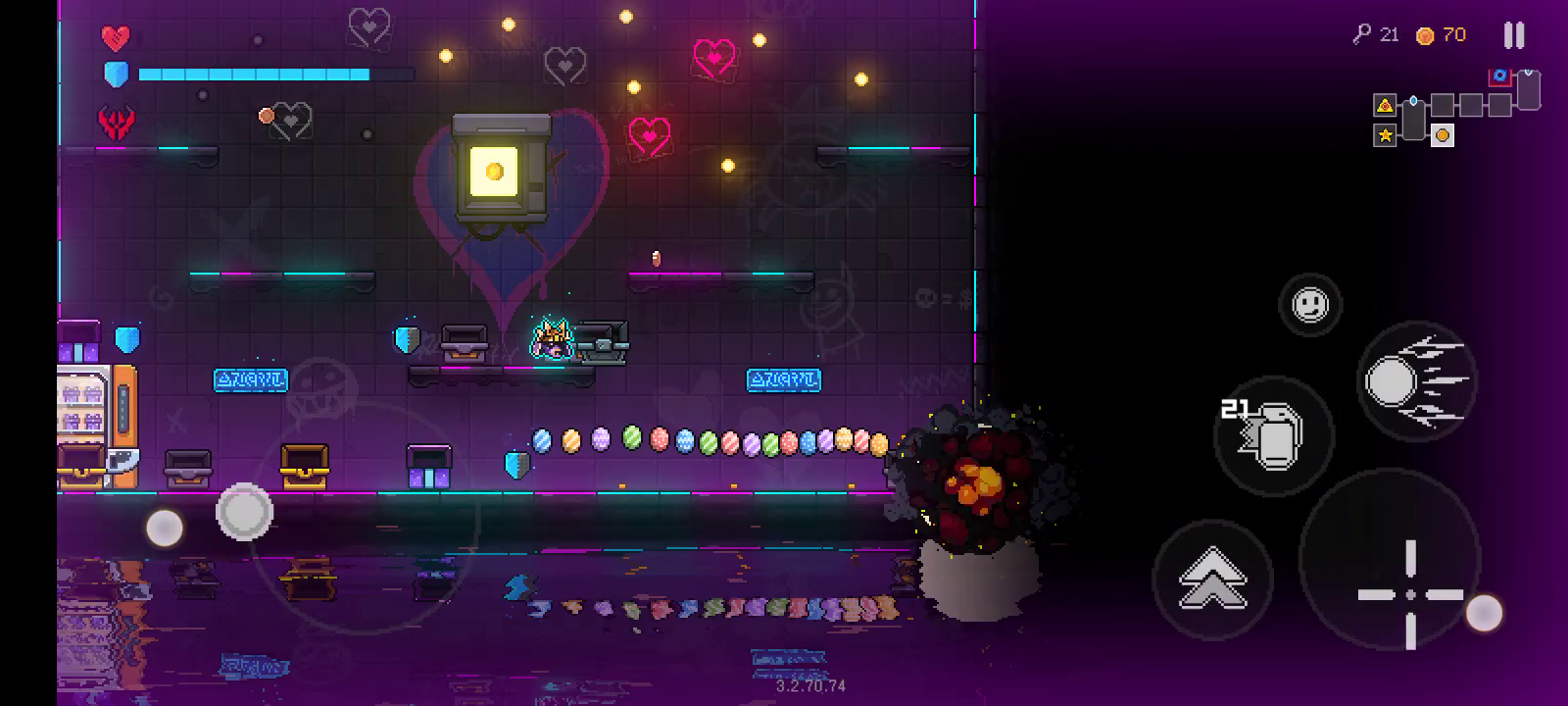 携带天使号角(受伤概率掉飞盾),进入深渊,偶遇这个房间,利用门口激光刷新飞盾,墙上五颗心满溢之后,就会刷新掉落物,注意不要捡到能量转化器(捡到的盾转化为钱)😇,捡到之后快乐就无了