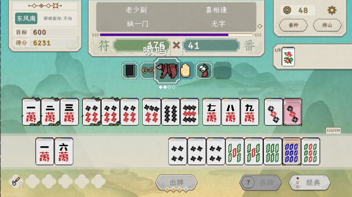 看我发现了什么?更适合中国宝宝体质的麻将版小丑牌! 这也太适合春节放假时玩了,我这一手麻将不得迷死七大姑八大姨! 游戏虽然是小丑牌like的玩法,但也融合日麻川麻国标的玩法,番种特别多。 还有上百种道具可以让你出千: 用锤子砸碎不想要的牌,拿米粒糊上牌面缩小数字,用贴纸偷偷修改牌面等等……各种精简牌组,逆天改命,最后胡出大牌,数字爆炸时特别有成就感,一把千万不是梦! 游戏