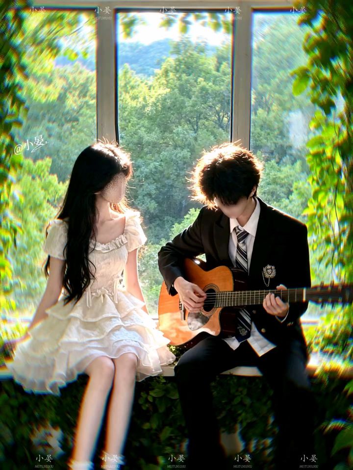 “玫瑰开的正盛,吉他声混着风穿过叶隙,是青春独有的浪漫序章”#青梅竹马