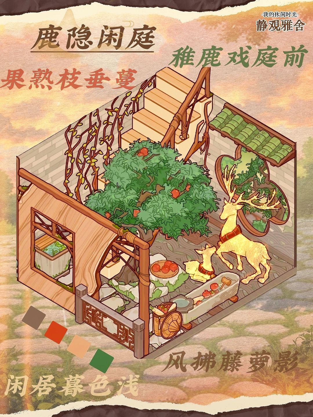 稚鹿戏庭前,果熟枝垂蔓。 风拂藤萝影,闲居暮色浅。 #我的休闲时光 #我的休闲时光创作 #我的休闲时光创作官 #我的休闲时光装修 #我的休闲时光蜗居物语 #静观雅舍微场景
