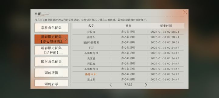 从上个月5月23号开始玩,没有整天的肝游戏,更没有氪过大小月卡,剧情基本上就是肝到能大世界探索就没往后肝了,部分地图解谜和锚点开拓外加成就,截止今天6月6号,每日做完,外加鸣潮官方送的福利。总结:除了新手池不会考虑外,一个自选5星常驻维里奈+70抽限定池出的忌炎以及今天20抽刚出的吟霖,总计90抽角色池,5抽官方送的武器池和自己补贴的5抽,10抽忌炎专武,总之纯白嫖游戏,没有特别欧也比不了那种出双