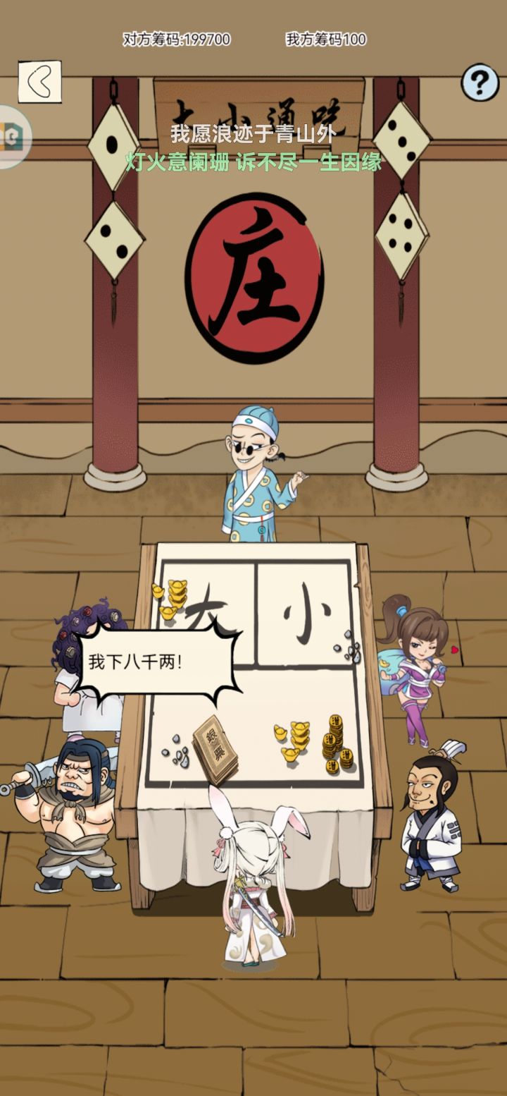 #韦小宝 TMD非得搞个赌博出来,赌了两个小时,不想给就别给了,真让我体会到这个游戏最恶心的概率了,赌完这个起码几个月不想碰斗地主麻将这种东西