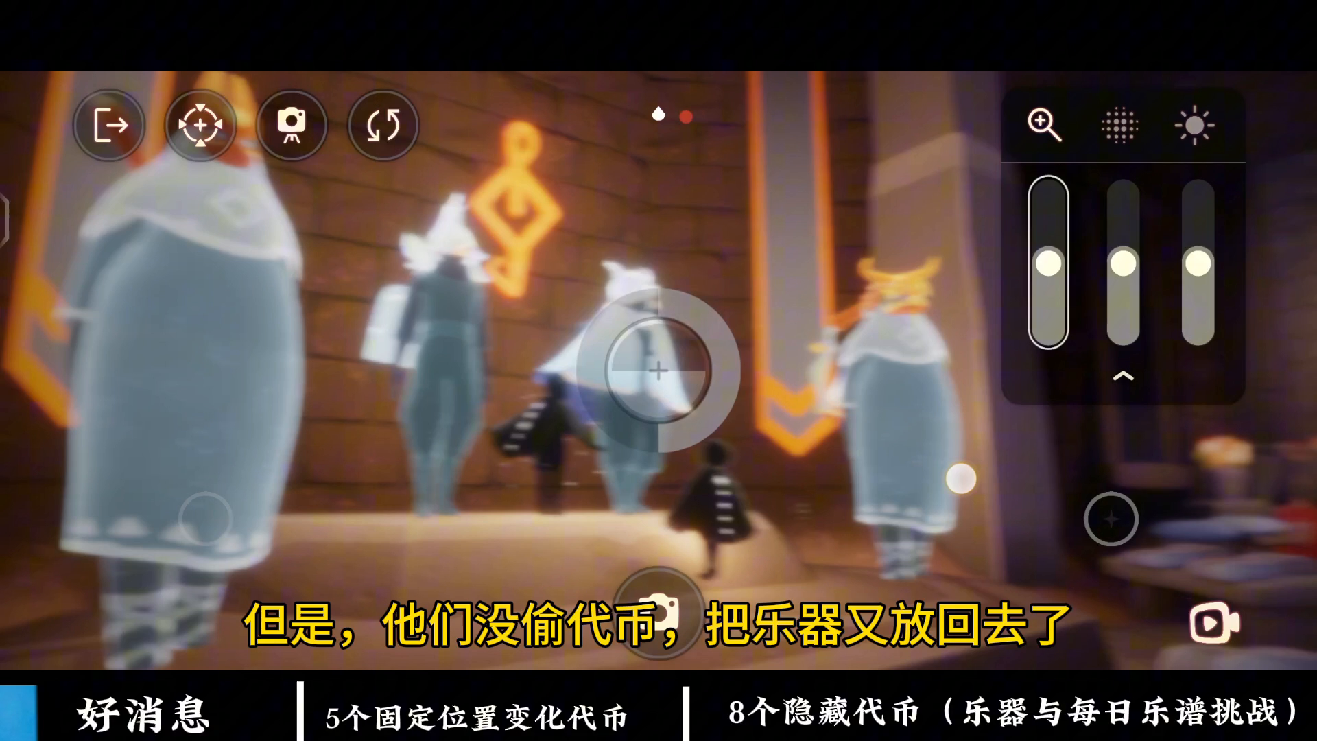 共17个音符代币,13处位置。 5个固定变化代币为第一组; 6个隐藏乐器代币为(从左至右):一楼手摇铃、琵琶乐器、竖琴、高音钢琴、号角、二楼手摇铃; 每日乐谱挑战(拿取后得两个代币); 2处额外代币位置:音乐大厅入口处和霞谷圆梦村入口处的音乐节标识牌旁边。#我的游戏日记Vol.1#攻略#光遇#音乐节#音符代币