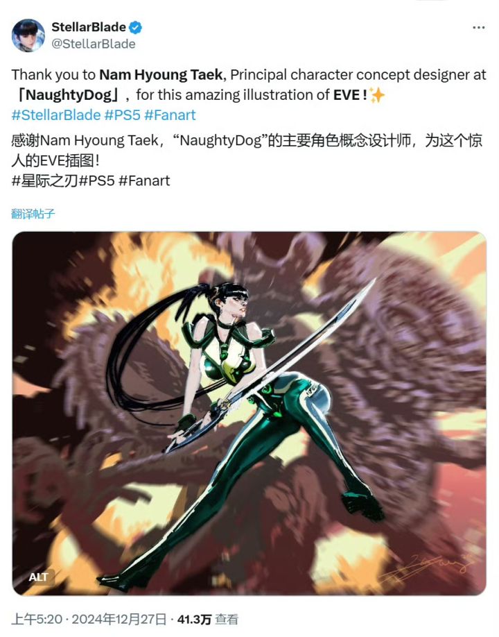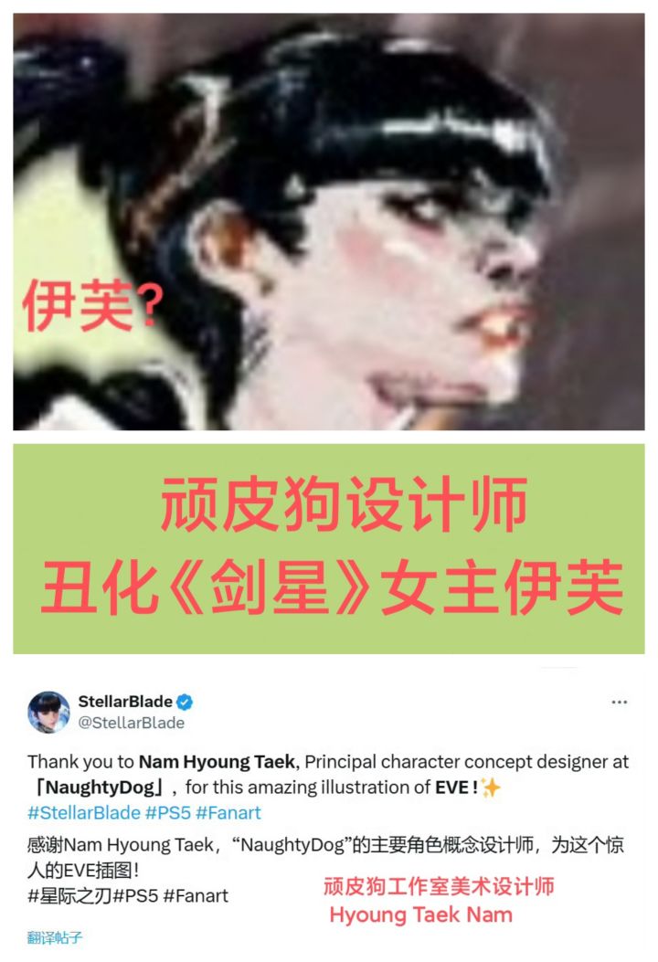 12/27号,《剑星》官方发文称,要感谢顽皮狗设计师给“伊芙”画的插图❗❗❗这张顽皮狗工作室角色设计师 Hyoung Taek Nam 画的《剑星》女主伊芙插图,不仅比例不协调,脸更是画得丑出天际他要不说是伊芙,估计都没人认得出来……就这明显被丑化的插图,《剑星》官方还帮忙转发,也不知道咋想的。真是应了那句话