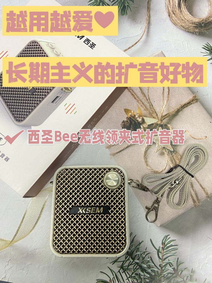 之前用过西圣的耳 机和领夹麦,感觉还不错,看到他们新出了一款扩音器产品——西圣 Bee 无线领夹式扩音器,身为培训讲师的我立马下单尝试一下! 这款扩音器没有明星代言,百元价位里兼顾清晰度、便携性和稳定性,算得上非常出 色的选择。 佩戴方面延续了“小蜜蜂”轻量化设计,磨砂工艺机身手感好、防滑耐用,领夹麦克仅 20 克,挂在衣领或腰间几乎感觉不到重量,非常适合长时间佩戴。 传输稳定性也很出 色,采