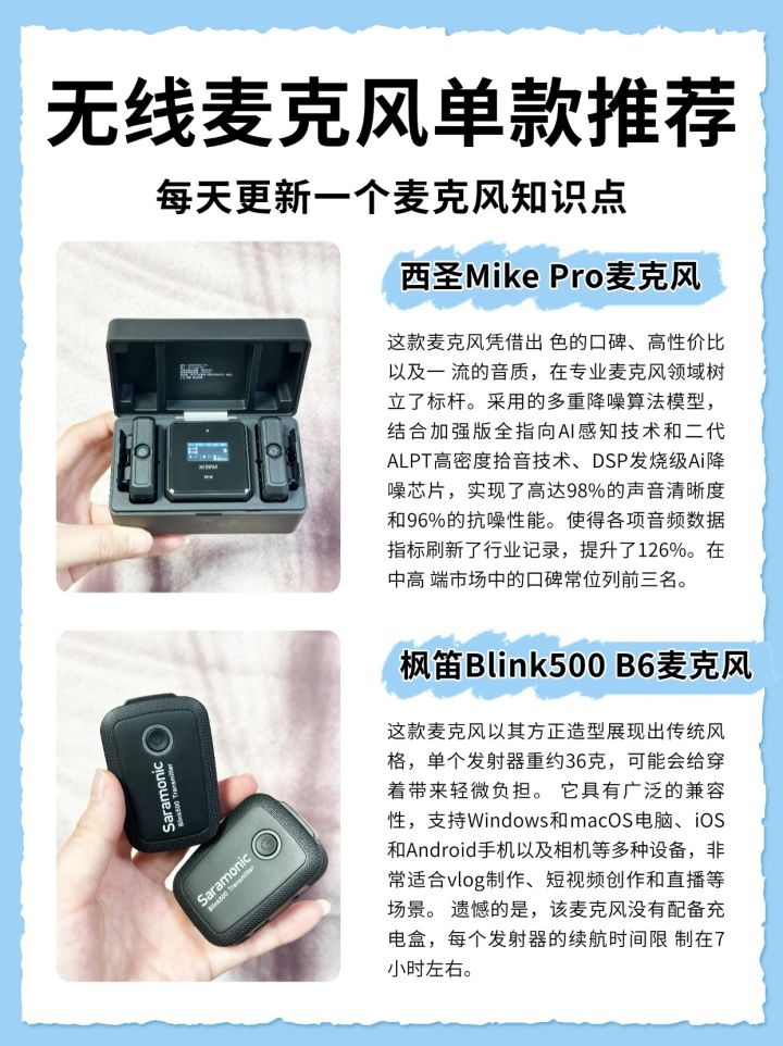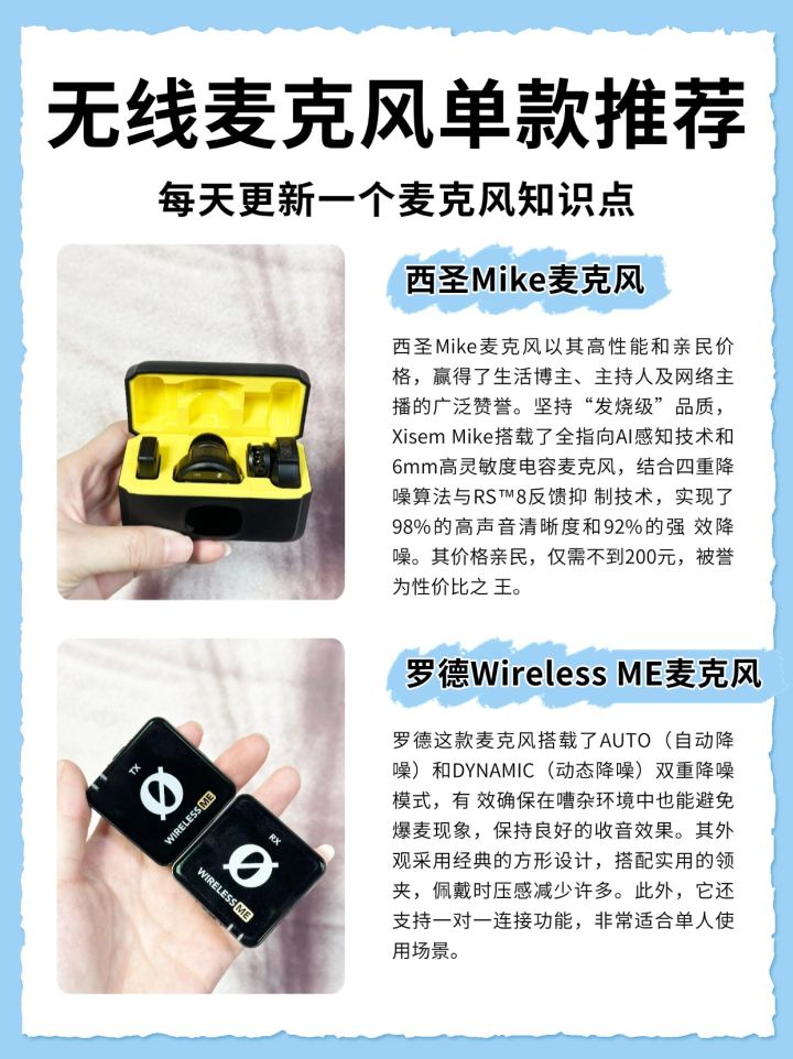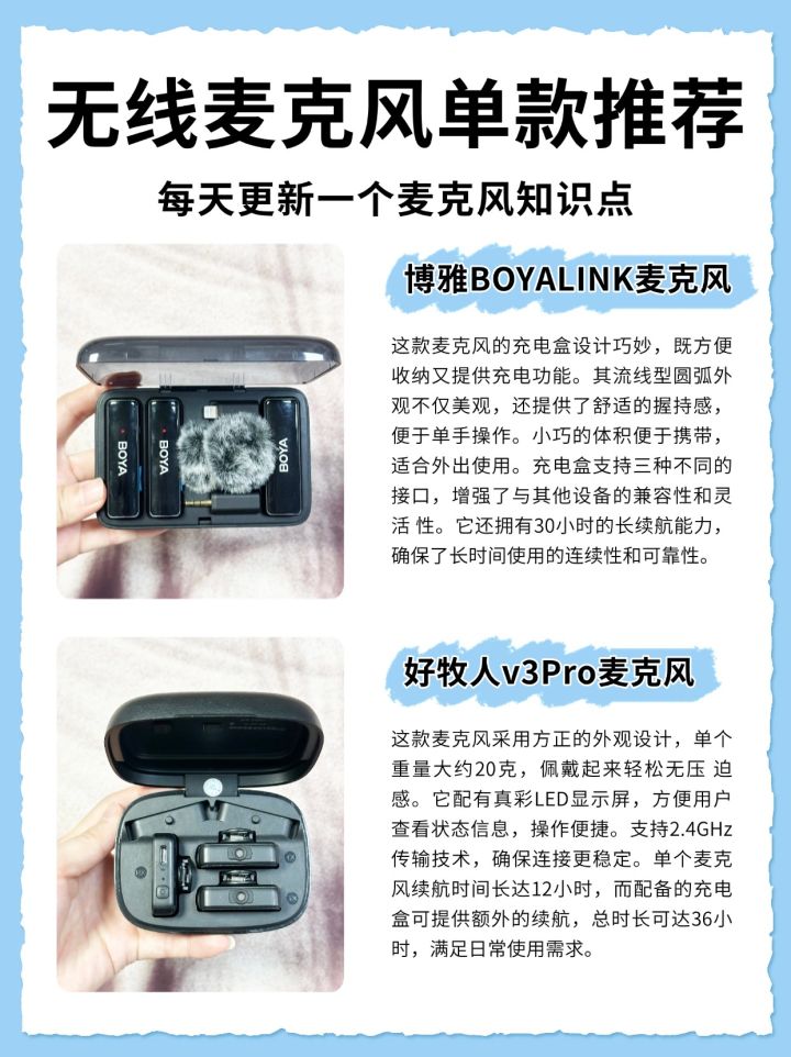 领夹麦克风/领夹麦/麦克风/自媒体/短视频/直播/无线麦克风/收音麦克风/无线领夹麦克风/无线麦/自媒体干货/录制/音频设备/直播麦克风/干货分享/vlog设备-姐妹们,选择领夹麦克风时可要擦亮眼睛,别盲目跟风,免得踩雷又浪费钱😭。用错麦克风,录制视频时确实会让人心情受影响😭。我整理了几款自己用过的领夹麦克风,每款都有它的亮点。有选购需求的姐妹们,可以来参考一下~#麦克风 #催眠麦克风 #好