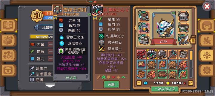隔壁的渠道服配装大厅,我风暴守卫一个都没有。最后只能自己出一套,顺便给自己点个赞了。总的来讲,装备大概是3哥布林3法师。属性点:全力。羁绊:3分裂3回响3法袍2重弹2吸血2双重副手武器:美杜莎之弓(蓄力后的buff增伤)核心思路:通过雷电锤的打击来触发冰锥。3分裂:增加投射物(雷电锤)的数量。这里有没有包括冰冻爆破后的“大量冰锥”存疑。3法袍:理论上穿三件法师套就能触发的隐藏羁绊,
