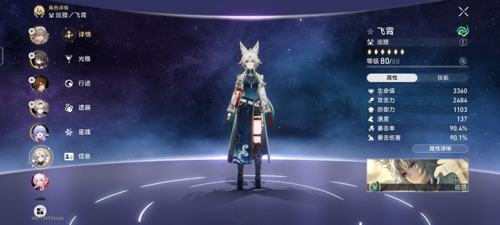 目前飞宵面板90暴率,90爆伤,够用吗行迹还没点开#崩坏星穹铁道 #飞宵