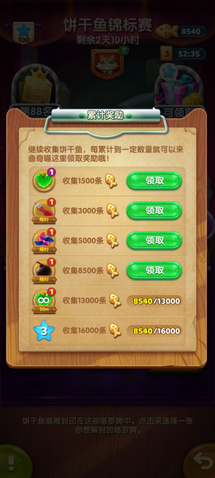 当我上次在饼干鱼锦标赛获得了1910块鱼饼干后,已经算是很不错的了,不过我这次在饼干鱼锦标赛的三连关卡中获得了7410块鱼饼干,并且我连续获得了四个奖励,分别是:一颗绿色的体力、一个飞镖,一个风车和一个炸弹💣。那么你们在饼干鱼锦标赛的三连关卡获得了多少块鱼饼干呢?快把你们的获得记得记在评论区上哦。#飞屋消消消#三消游戏#游戏#锦标赛