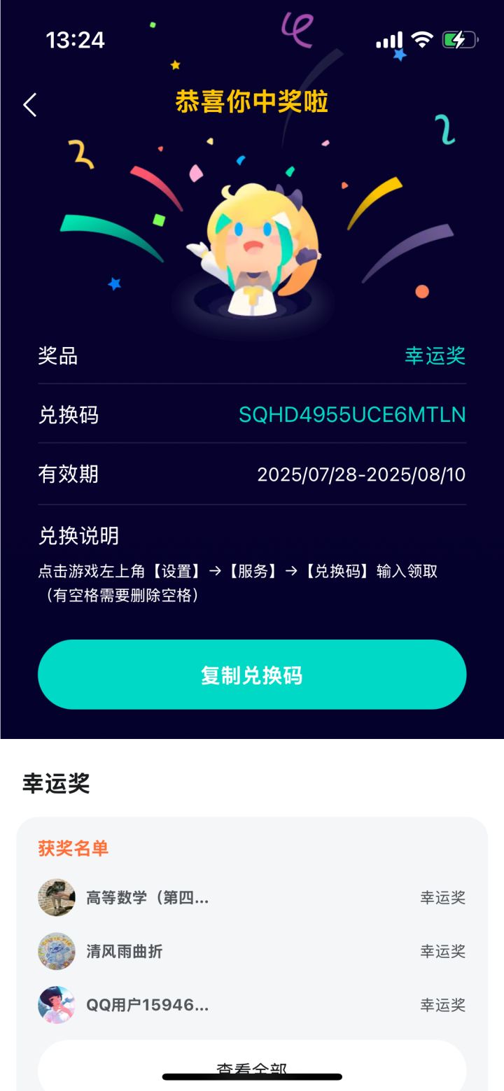 周年庆抽奖兑换码