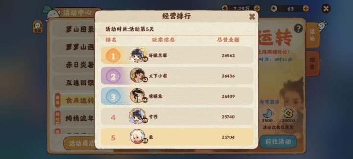 完了两天的萌新,每次开业还跑几个客人,排行第一?#食来运转