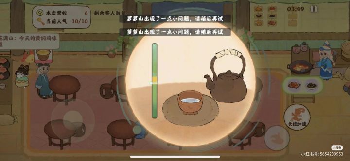 明明取了菜没显示,也没法再取,也没法上菜!还有倒茶,倒好了还一直让倒茶,食客跑完了都!!游戏中我没截图,图片中其他村民也有这样情况,赶紧解决呀官方#休闲游戏#桃源深处有人家#食来运转