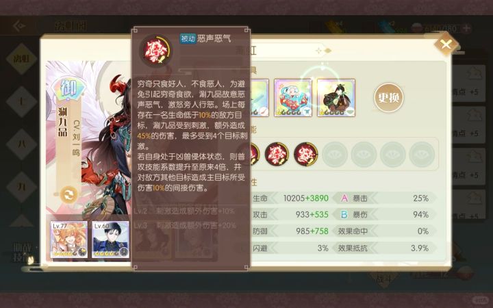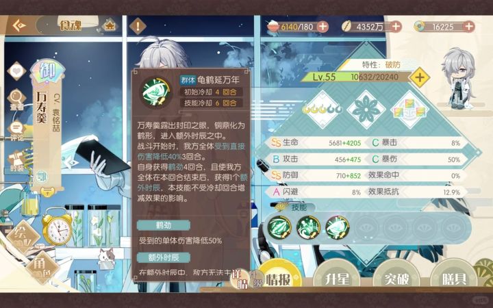 书接上上文,又是万用阵容的的国主和万寿这两熟客(可以说一个阵容我发挥到了极致,根本不需要你再养个新的去专门打膳具阁)阵容:万寿+国主+俩群攻助战:白嫖一个幸运儿的群攻用一用膳具:随便,不带都行,别看我万寿带了膳具,我只是懒得下了操作:第九关,助战群攻等乌鸦出来之后放,然后放就是锁boss,国主放技能,群攻放群攻,没乌鸦就单体,万寿有大就放就行(万寿国主有大就放,群攻等乌鸦出