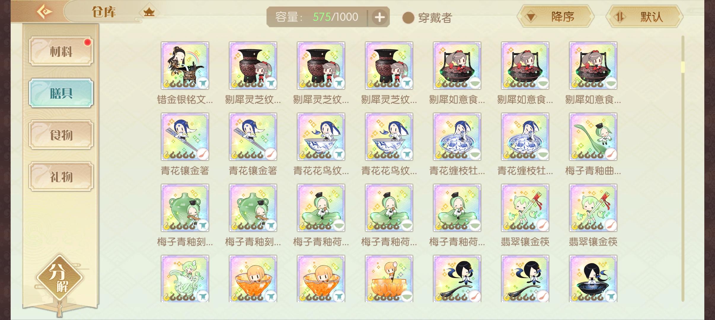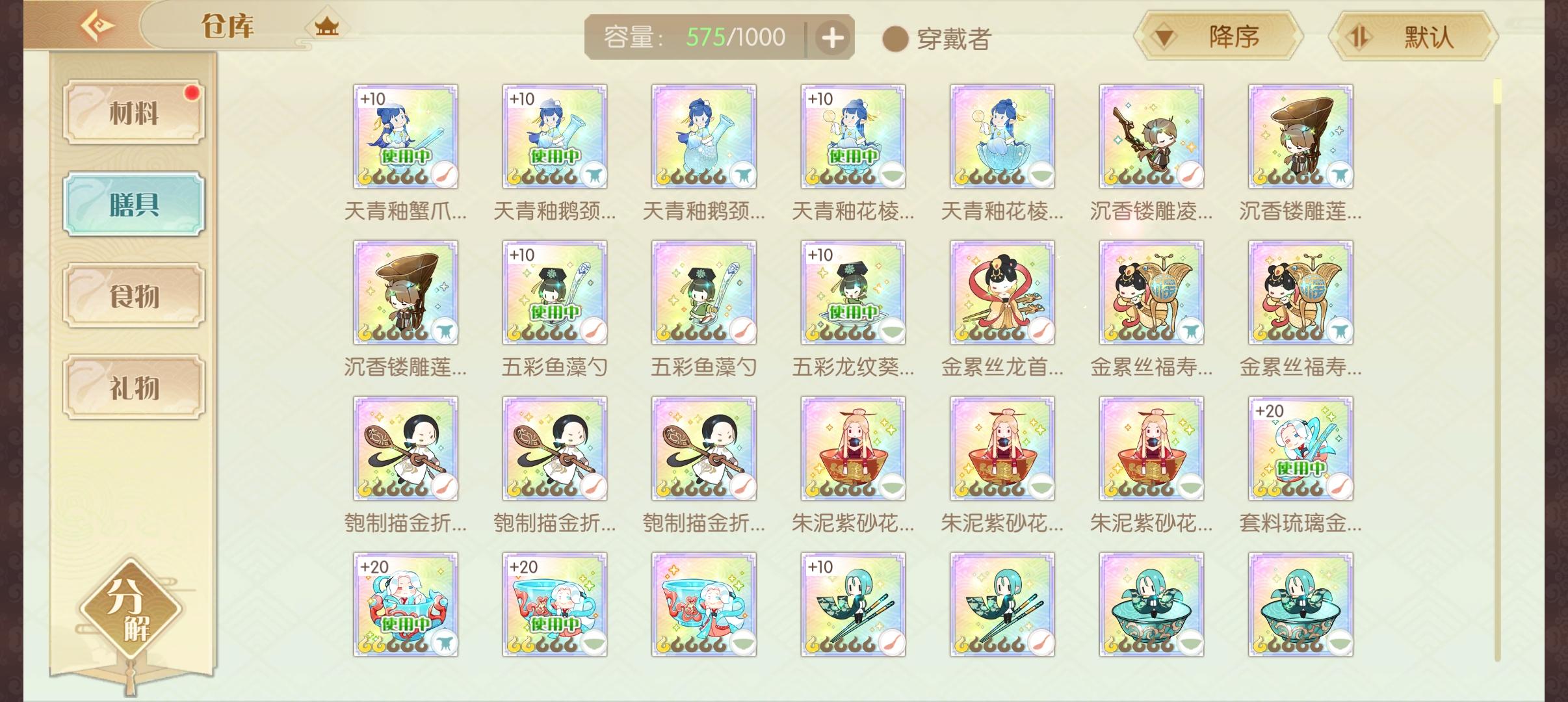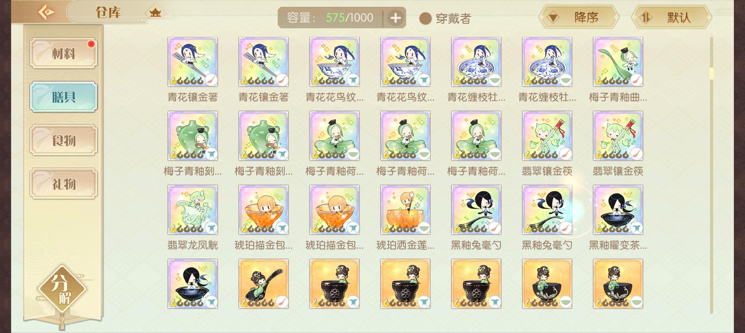 🌟一共12张。🌟每个珍品膳具都有对应的御品膳具(可平替)。#食物语 #食物语陪伴版 #食物语手游 #食物语膳具