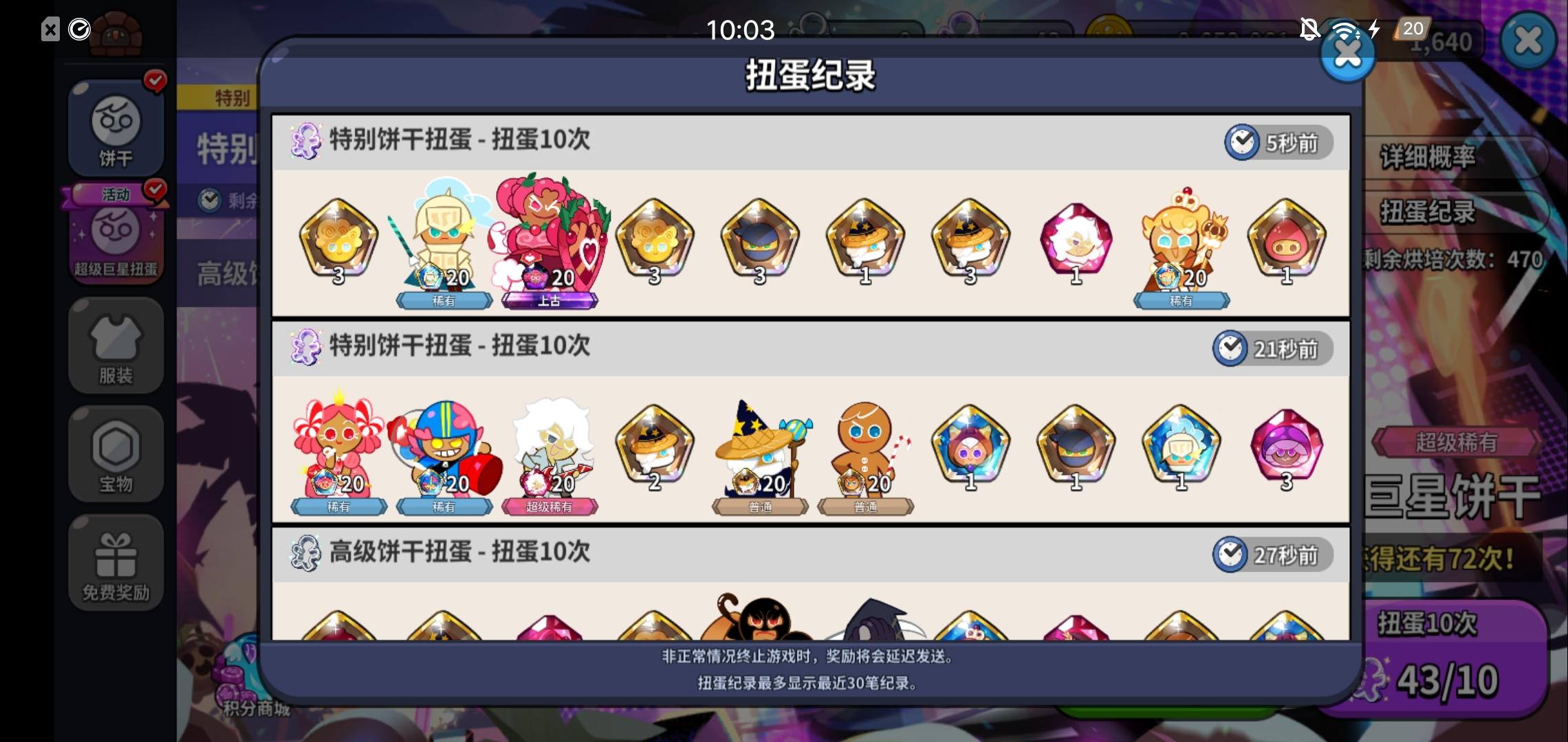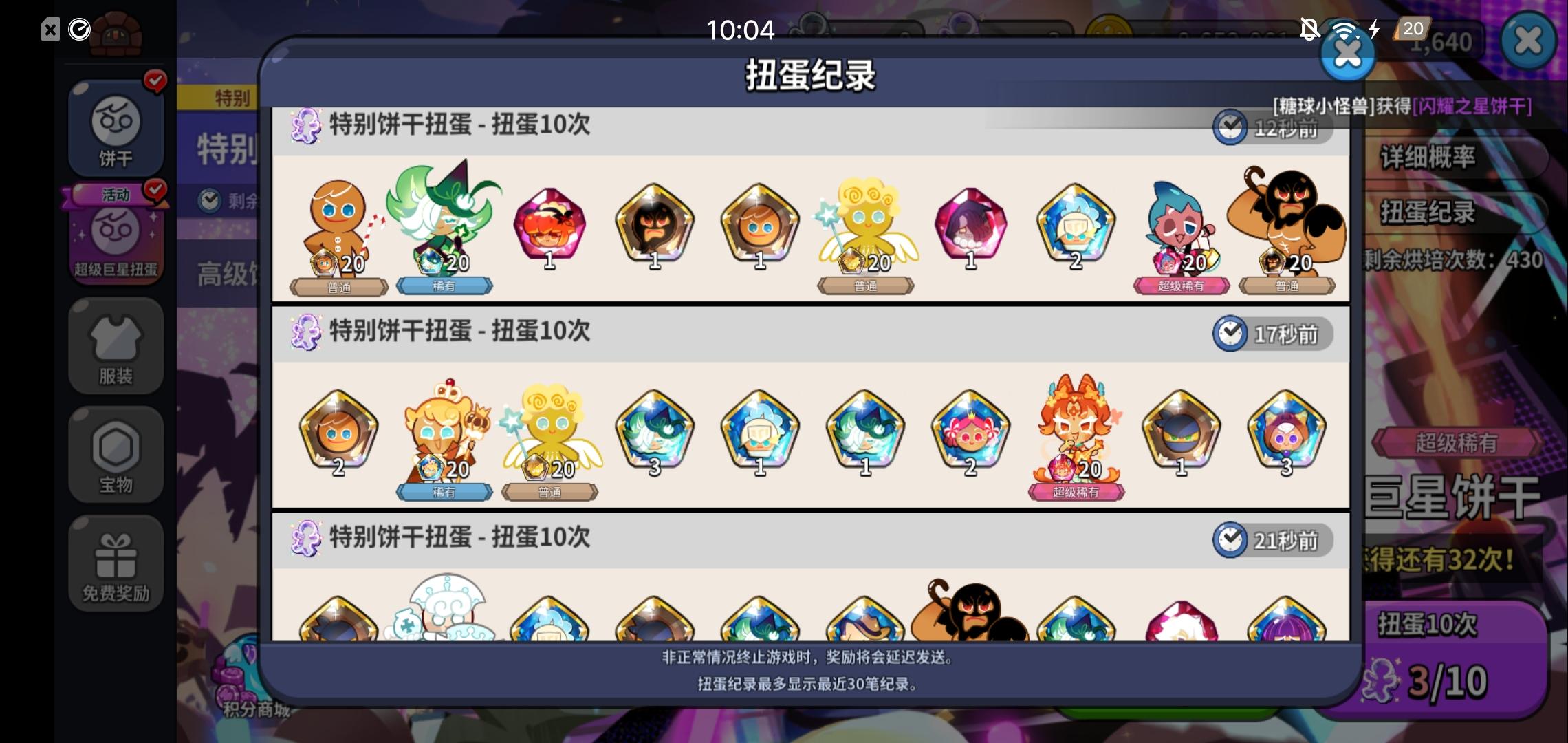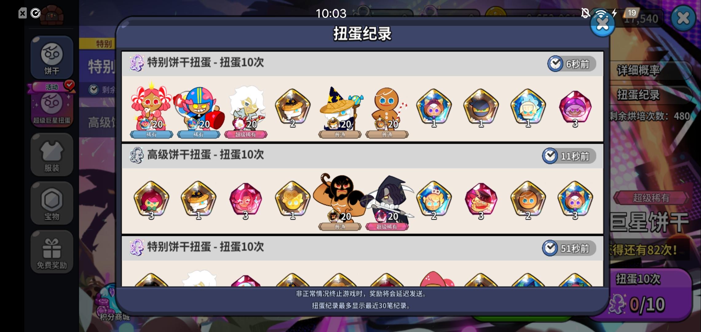 我这个号是不是快废了呀 完了快两个月了一个高级点的都没有 都是超级稀有 是不是只有氪金才能出啊[表情_惊恐]#饼干人王国
