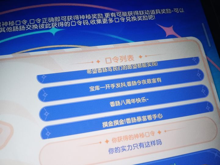 #香肠派对八周年口令