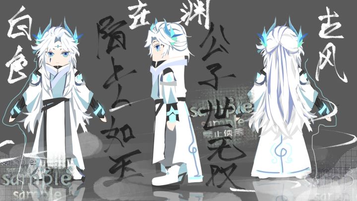 #香肠派对第二届设计大赛 #香肠派对皮肤设计 灵感:应了朋友的要求,画了白色古风,比较想画一个美男子ID:krg3yw
