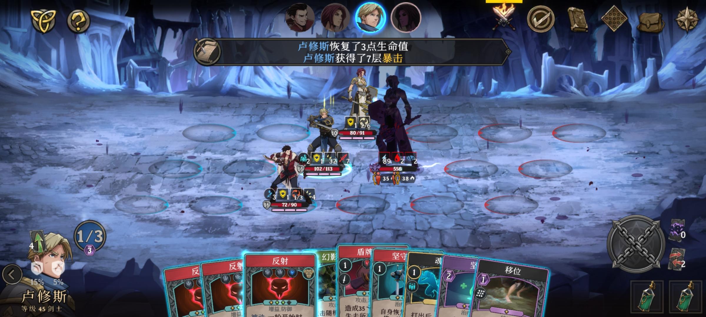 #攻略 #游戏攻略 #高殿战记 本人第一次接触这个游戏,之前也玩过类似的如杀戮尖塔什么的。截图是我的第一次档,最高难度剧情模式,因为就买了剧情,没买dlc,用的初始三人组,我觉得也挺强的,已经是成型了。简单总结:这游戏前期有点难,中期好玩,后期可玩性太低了。首先讲前期。我真想吐槽一句,内容有点复杂了。新手教程根本讲不清楚这游戏的内容,很多小地方都要你一个一个去点你才知道是干啥的,策略点,行