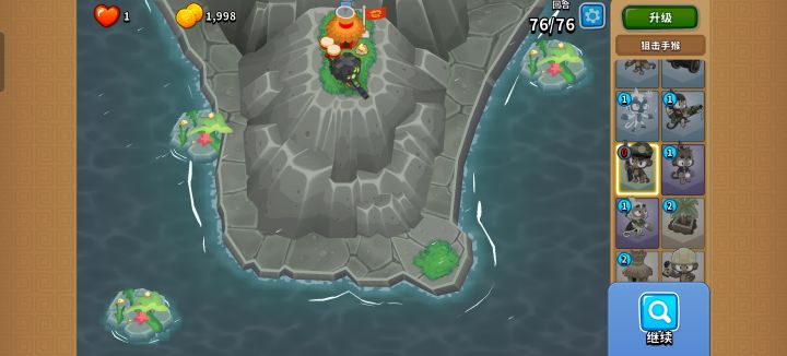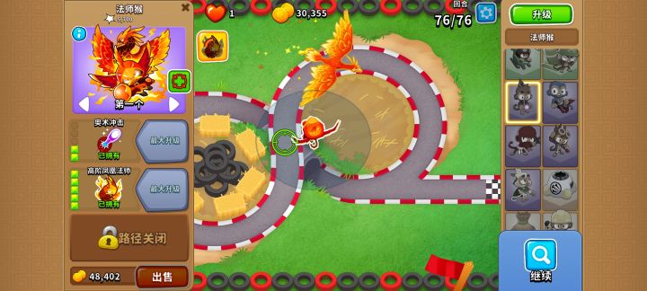 开局是220猴村和030德鲁伊,待所有重生都去除后快速卖掉德鲁伊并摆一个052狙击手。#攻略#气球塔防6#高级挑战