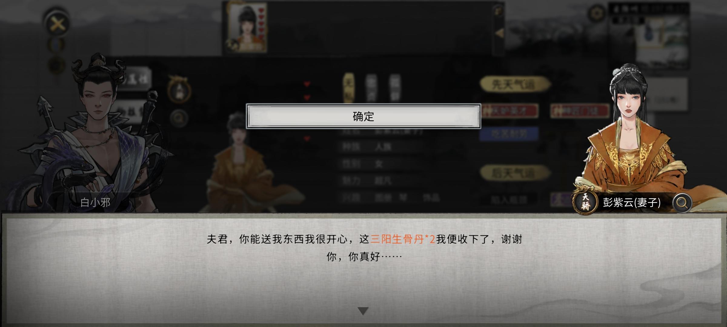 第一次玩着游戏非常上头,连肝了两天满脑子都是修炼对于道侣基本没怎么关心,好感度刷满就不理她了,直到她替我挡刀死在我面前……人麻了,真的麻了。回想当初还只是个练气菜鸡的时候只是和她有一面之缘她就愿意拼着重伤救我,看她是个天骄随便送了点礼物就把她拿下了,一路走来她总是想着找我玩给我送丹药功法各种东西,每次境界提升说的也都是可以帮到我了,因为前期杀了很多人仇家众多几乎每个月都会被高等级修士寻仇,我都数不