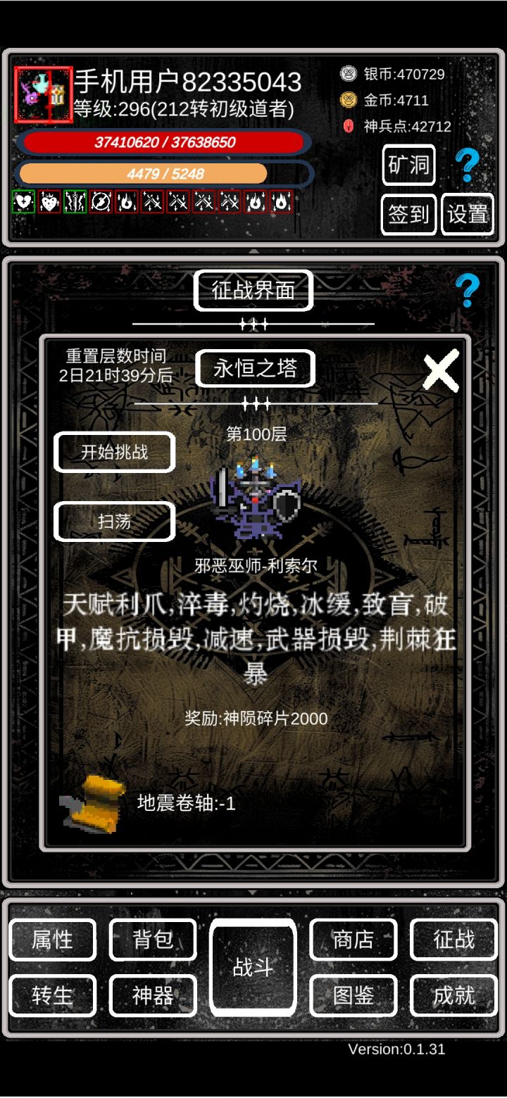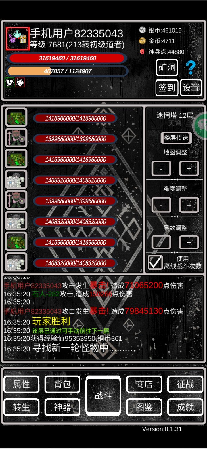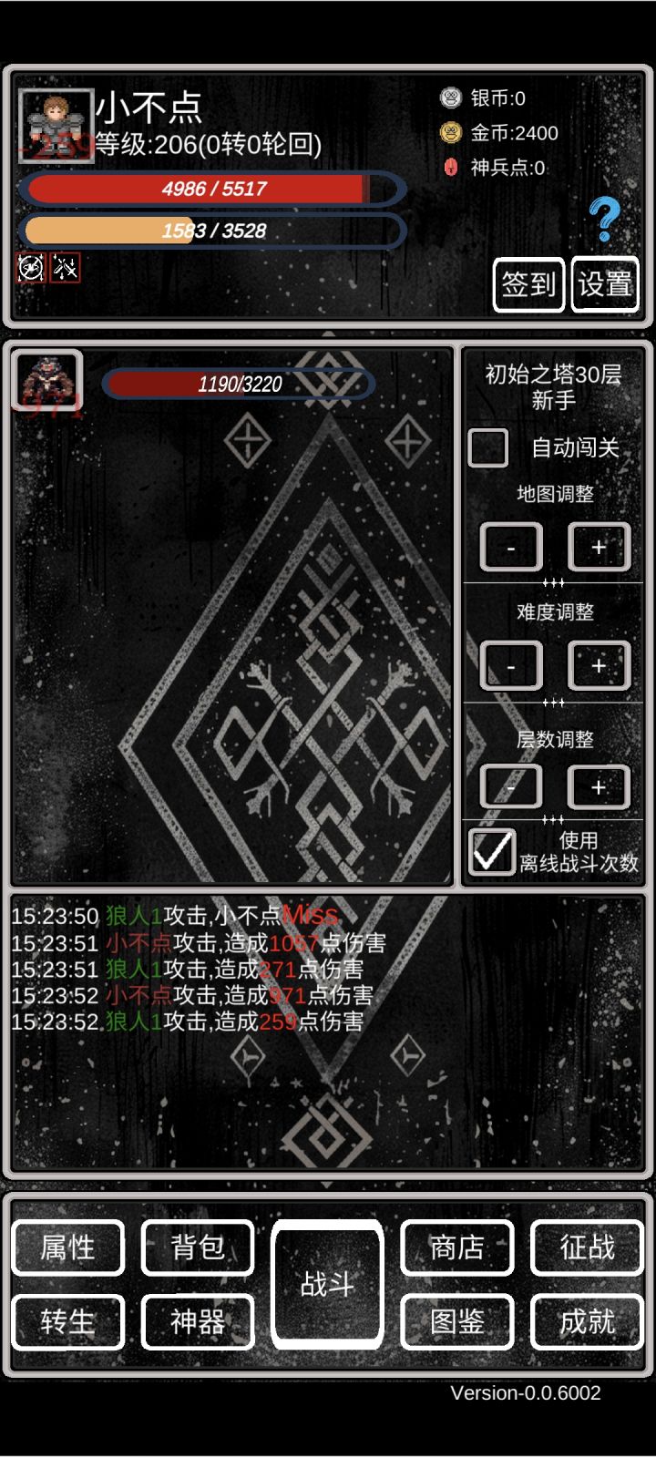 稍微玩了一下,一个挺不错的挂机游戏,慢慢肝#魔塔挂机2 。
