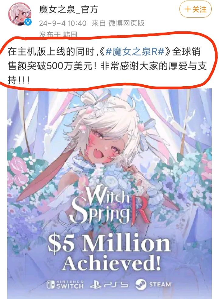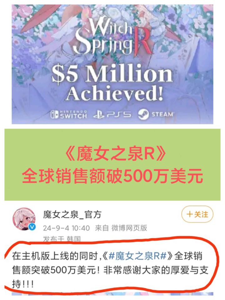 《魔女之泉R》销售额破500万美元🔥🔥🔥