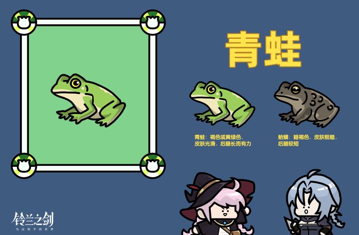 好肥美的身影!这圆滚滚的体型,想必一定是……*今日猜猜我是谁奖励:评论区留言,小场记会抽3位团长送出【铃兰之剑披风】~*Day2答案公布:是青蛙!(右划图片查看)伊斯特拉!你又猜错啦!*贝拉的科普时间:咱的迅捷青蛙可不是蛤蟆!青蛙的皮肤一般呈现褐色或青绿色,肤质光滑,后腿长而有力;蛤蟆则一般为暗褐色,皮肤非常粗糙,后腿也比较短呢!#铃兰之剑 #魔女之章
