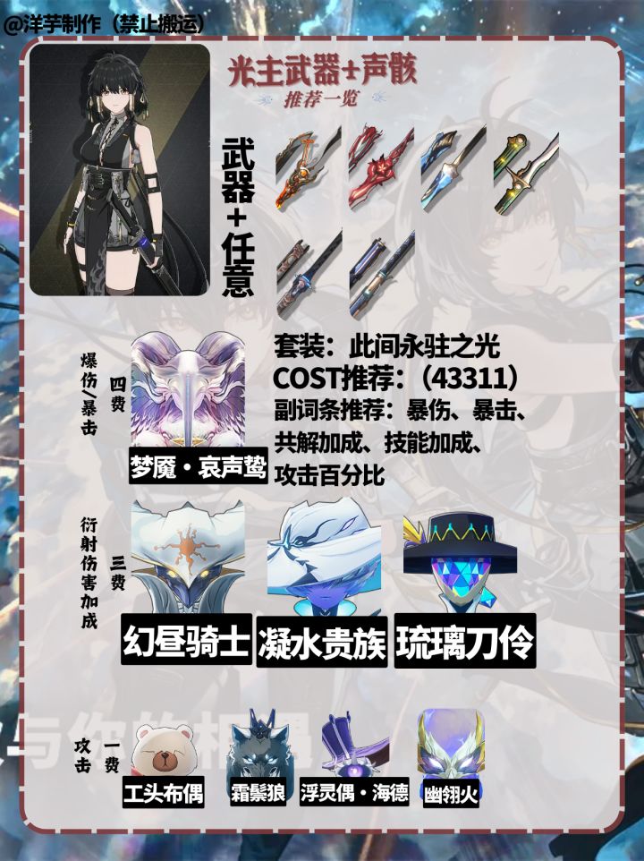 #鸣潮公测创作征集令 #鸣潮今汐 #鸣潮角 #鸣潮主角 #鸣潮声骸攻略 #鸣潮哀声鸷 #宝藏游戏安利派对 #游戏种草计划 《鸣潮》今汐和主角光主声骸推荐搭配及主声骸哀声鸷所在地