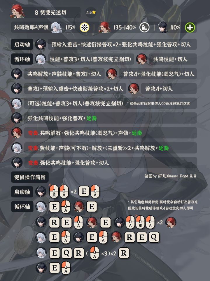 鸣潮角色手法系列来了,年初的时候我们发过珂莱塔的手法,时隔多月改良版模板出炉,这次模板主要注重实用性,会将一些核心操作进行解释,方便漂泊者们理解记忆。那么第一期就带来了鸣潮赞妮的常见配队手法大全,一共8套,潮友们可根据自己配队进行选择~------------------------------------------攻略食用指南:① 叠甲:任何手法都需要技巧和反复练习,有的还需要极高的手部