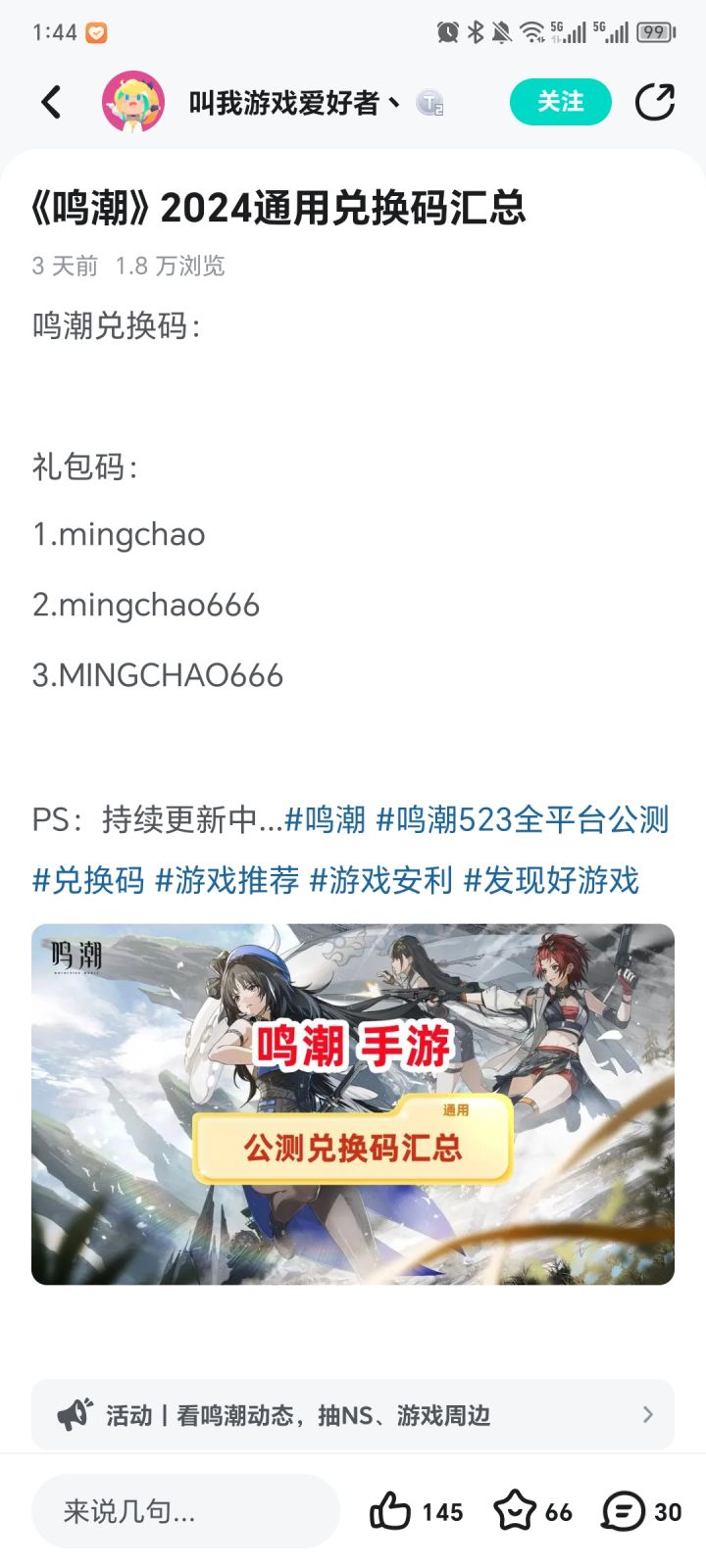MINGCHAO666MINGCHAO建议直接复制(就是鸣潮的英文)兑换码等资源第一时间发🔥兑换码资源丘丘裙 🔥484436023🔥#鸣潮 #鸣潮攻略 #鸣潮兑换码