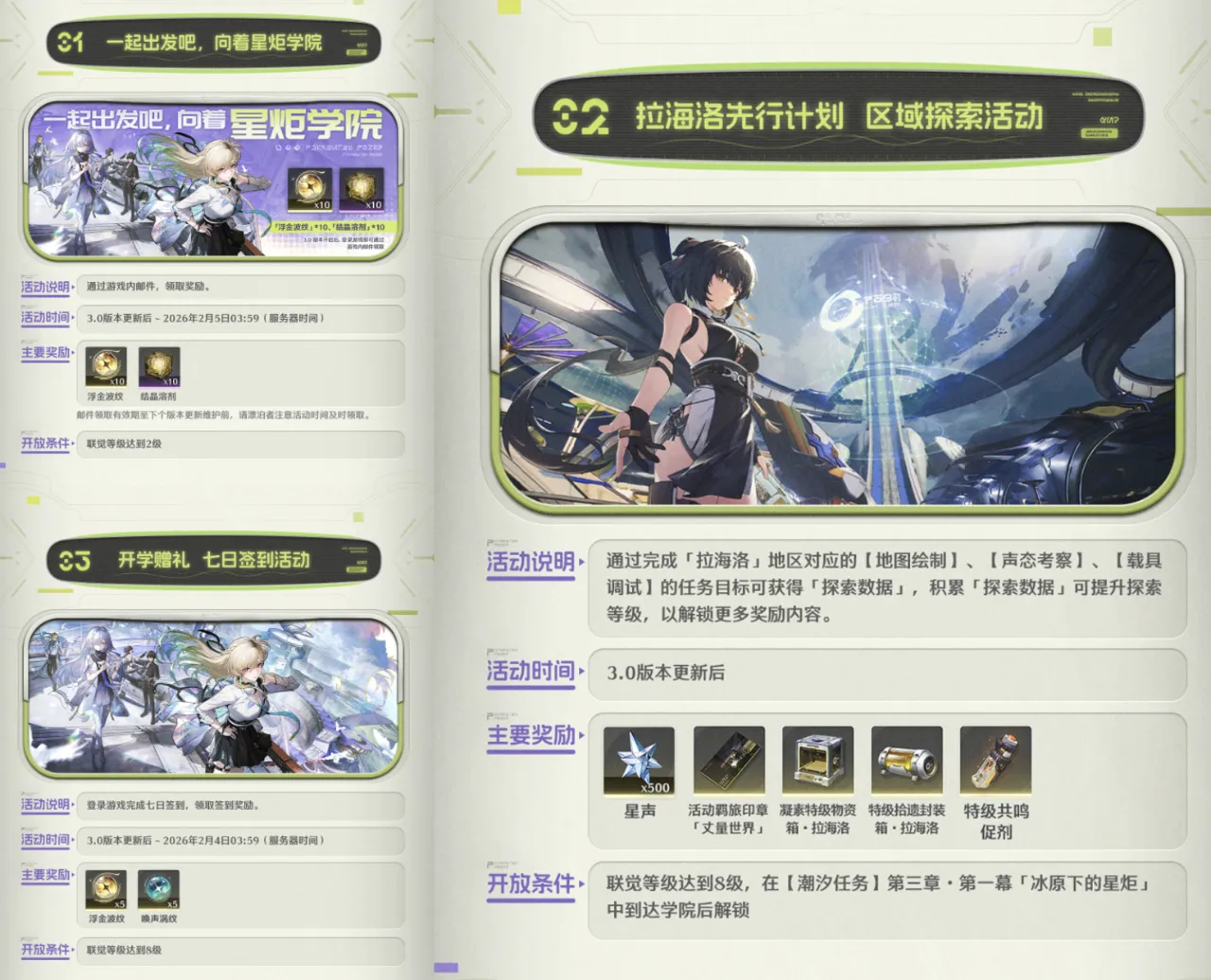 鸣潮3.0版本「我们生而眺望」的预下载已经在12月23日10点正式开启,还没动手的赶紧冲,12月25号维护后就能直接体验新版本内容啦,这次版本福利是真的顶,光免费福利就有25抽+3380星声,还有一堆实用活动等着大家。新版本卡池上半会UP新五星琳奈,还有卡提希娅、夏空的复刻,琳奈作为衍射佩枪角色,既能加谐度破坏增幅又能增伤,不管是老玩家体验新机制还是新手入坑都很推荐。版本更新后,全新潮汐任务【冰