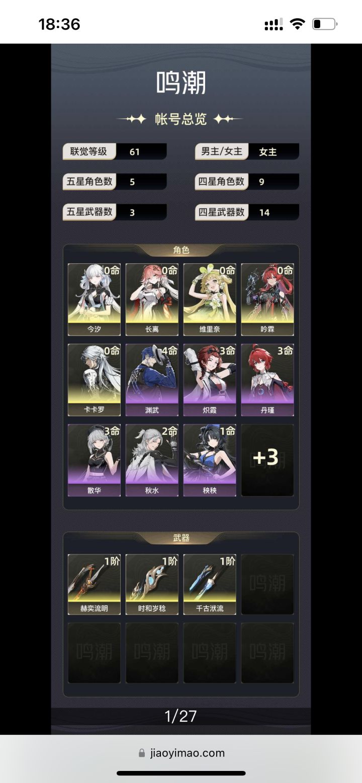 限定垫10抽。声核小毕业。普池自选还在还30抽保底,5星武器自选箱还在。地图80%。不知道怎样,养的还可以,但弃坑了。 #鸣潮忌炎 #鸣潮长离 #鸣潮吟霖