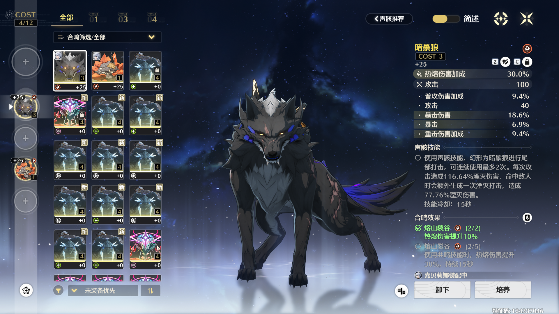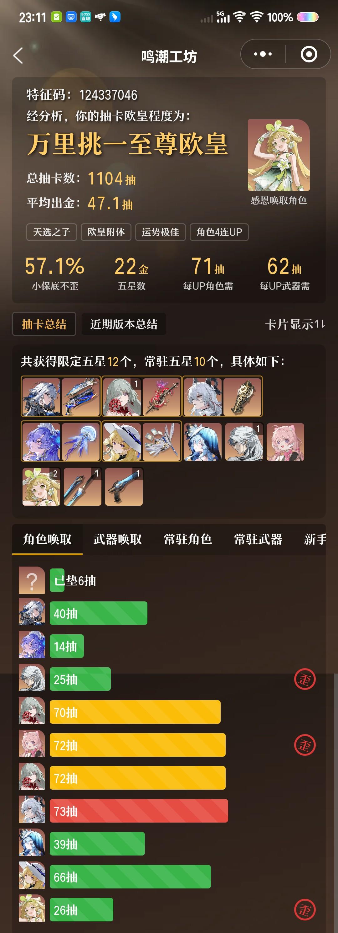 主线还没推,优化还没管,但进了池子,80抽拿下嘉贝莉娜0+1,用了上个版本商店和活动给的17个黄球17个专武抽数,原本1.8w的星声变成了1.4w,四舍五入等于没花,还能把千咲的资源留出来 然后说搞声骸吧,因为之前没准备只能现做,焚羽三件套没办法,但是熔山裂谷两件套还是可以搞的,然后花了不到50密音筒,做出了p4p5两个四有效熔山套装…… 从今天开始我就是库狗了,别骂,你要有这种待遇你也当