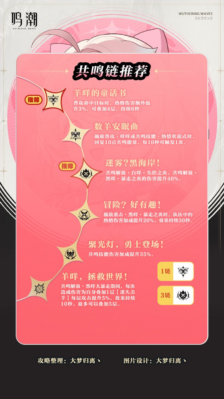 hi!大家好。 我是阿离! 给大家整理好了安可的养成攻略。 从角色养成,培养材料获取,声骸推荐,技能加点,武器装备,搭配阵容,共鸣链推荐等,全方位为大家讲解现版本安可的养成。 #鸣潮 #鸣潮创作激励 #鸣潮往岁乘霄醒惊蛰 #鸣潮攻略 #鸣潮安可