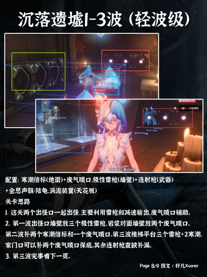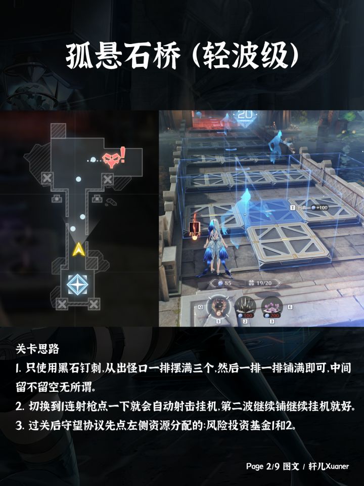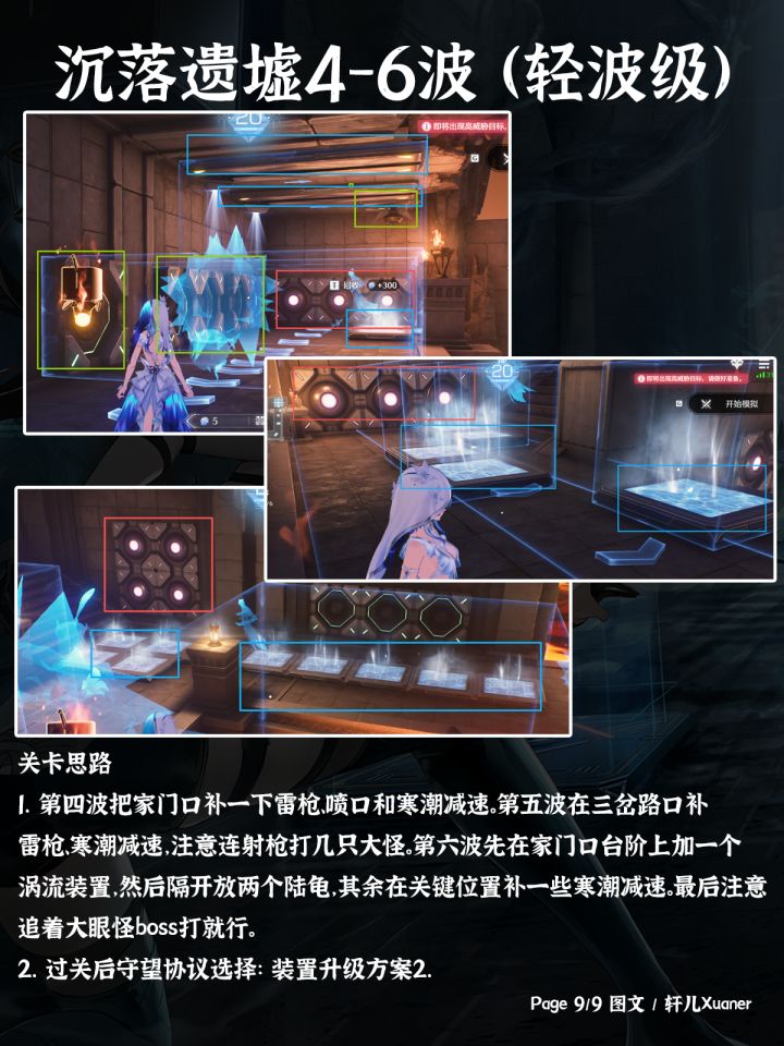 漂泊者周末好呀!轩儿这两天会给各位出一个塔防潮蚀模拟的图文系列,轩儿Xuaner会尽力用图文描述好(不做视频的难度好大...),第一期是扼守要地轻波级的六关--------------------攻略食用指南① 装置摆放会用游戏内截图的形式展示,大家可以参考截图去游戏内对应下位置。② 一些关键装置会用颜色框框出来提示大家。③ 下面文本会描述本关需要带哪些装置和摆放装置思路、以及通关后选择