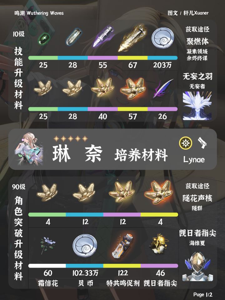 鸣潮V3.0|琳奈角色培养一图流攻略