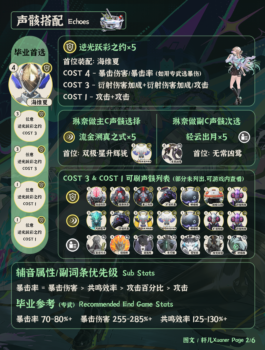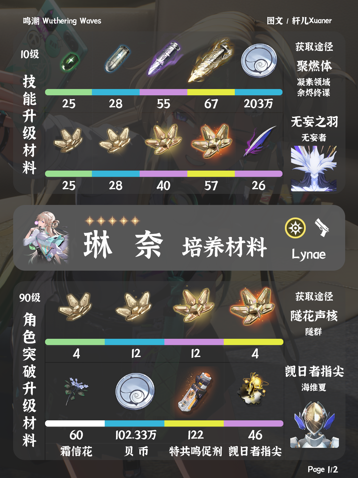 鸣潮角色 | V3.0琳奈培养攻略一图流