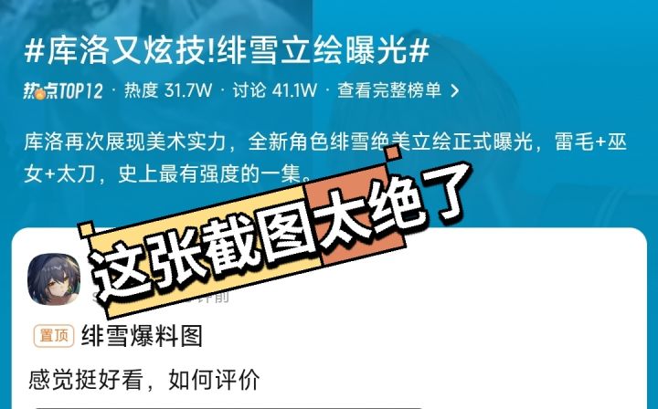 ⚡库洛新角色立绘被爆料,竟然还上了热搜大的出现啦家人们!由广州库洛科技有限公司开发的知名开放世界动作游戏《鸣潮》竟然又上热搜了!这次是鸣潮新角色绯雪的立绘最近被内鬼提前爆出来了,看完后觉得这发色身份武器的设定确实戳人,因为上热搜了网上看到的人不少,这次爆料里有些地方还被涂黑,说是因为涉及后续剧情剧透论坛里现在分成几派,一边急着看新老婆,另一边在喊话别再传图了,还有人觉得内鬼这种行为就是破坏游