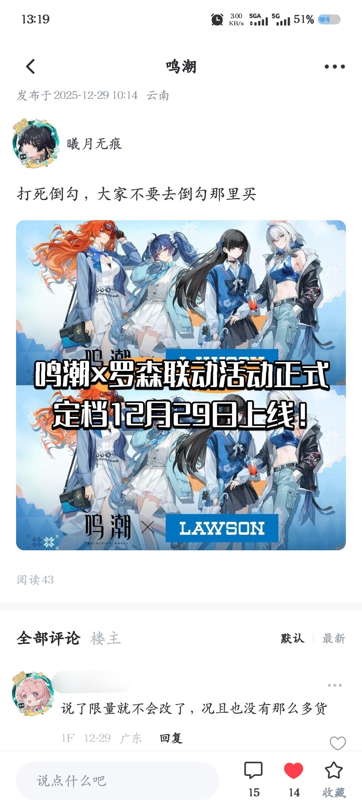 鸣潮×罗森联动,礼盒限量3000盒😅👍