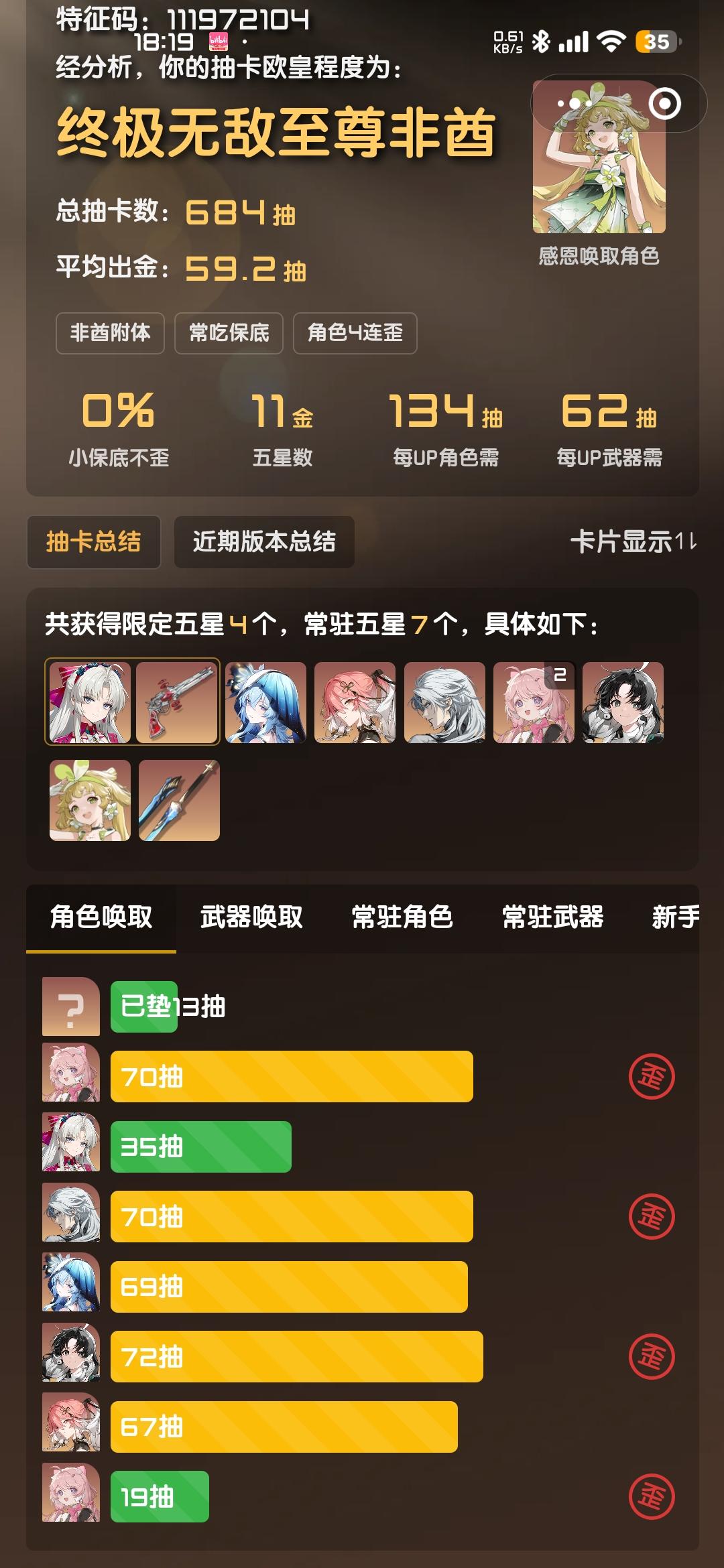 2.0入坑,里面只有汐汐是0+1。小月卡玩家,手里还有20抽,2.1攒一攒估计能凑个大保底,给菲比还是等守岸人复刻呀?非酋还是不指望全都要了#鸣潮 #鸣潮菲比 #鸣潮守岸人